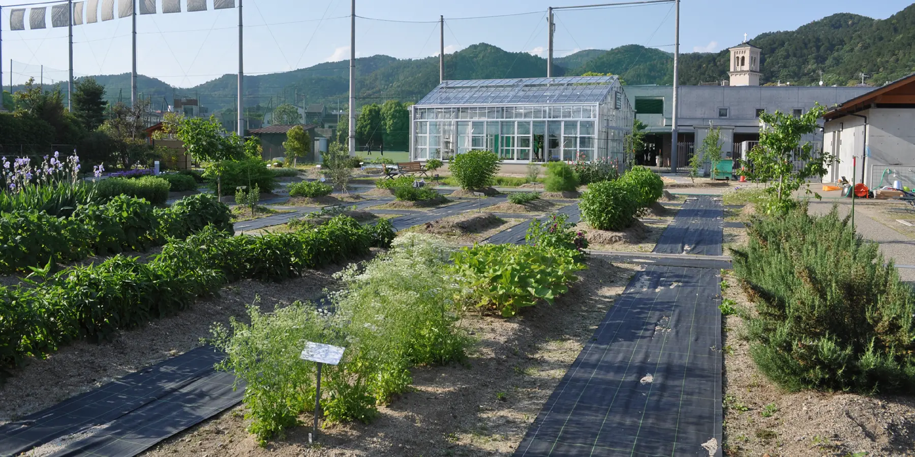 薬用植物園御陵園は本学グラウンド南側に位置しています。2011年に学生が薬用植物について学ぶ見本園として設置されました。面積約2,700㎡の敷地には圃場や熱帯植物を栽培する温室、水生植物を栽培する池、庭園があります。