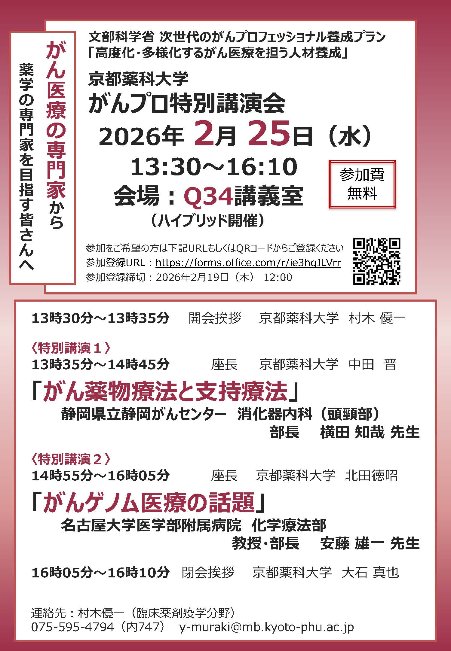 【募集対象】がん薬物療法に関連する高度な知識・技術の習得を希望する薬学研究者。