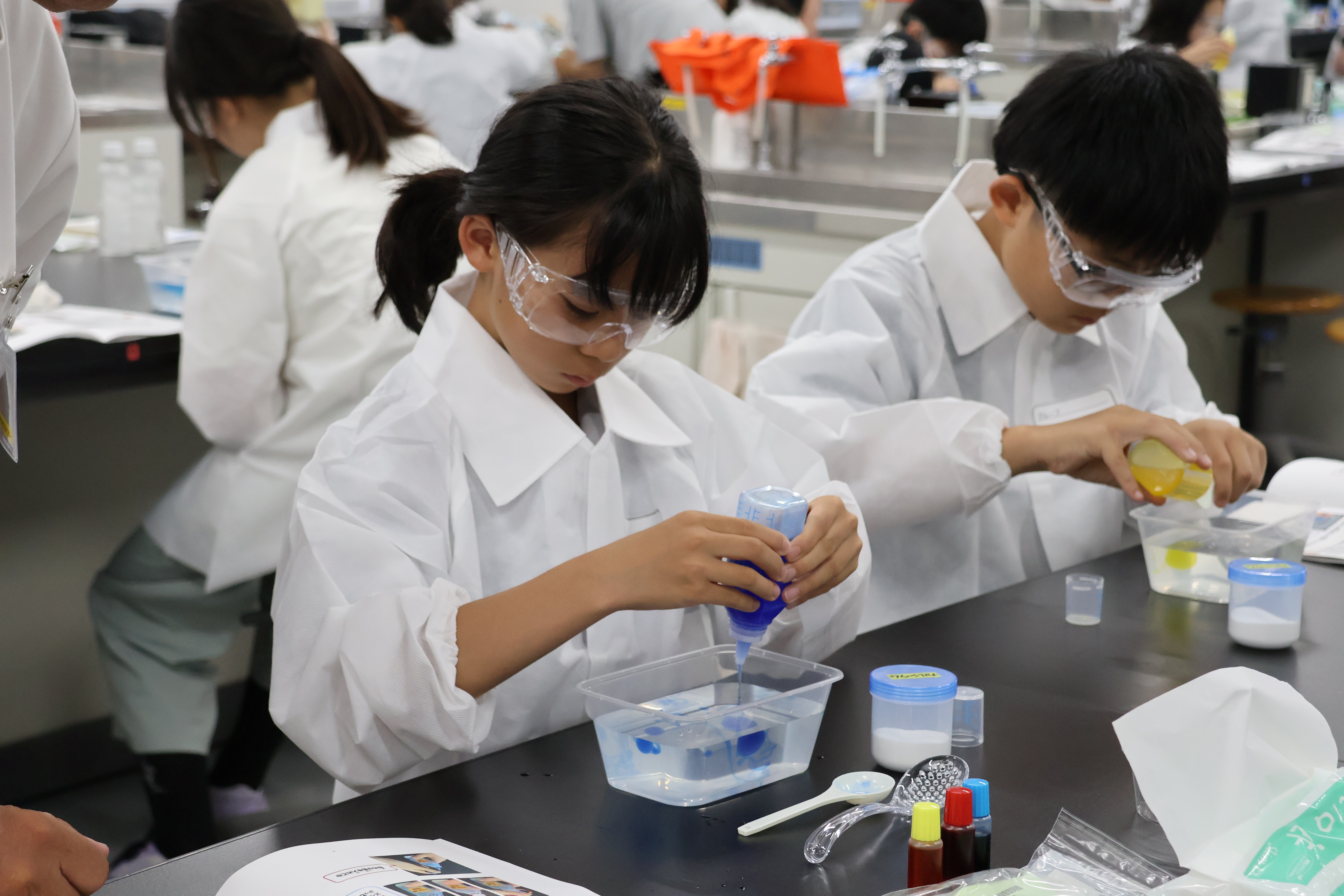 京都薬科大学では、山科区「はぐくみ」ネットワーク実行委員会共同で山科地区の小学生を対象に理科実験講座を主催しています。2011年は「光と色のイリュージョン in 山科」として、2012年以降は「身近な夏の不思議体験 イン 山科」として、理科に対する興味を持つきっかけになればと学生実習支援センターが中心となり、毎年夏に開催しています。