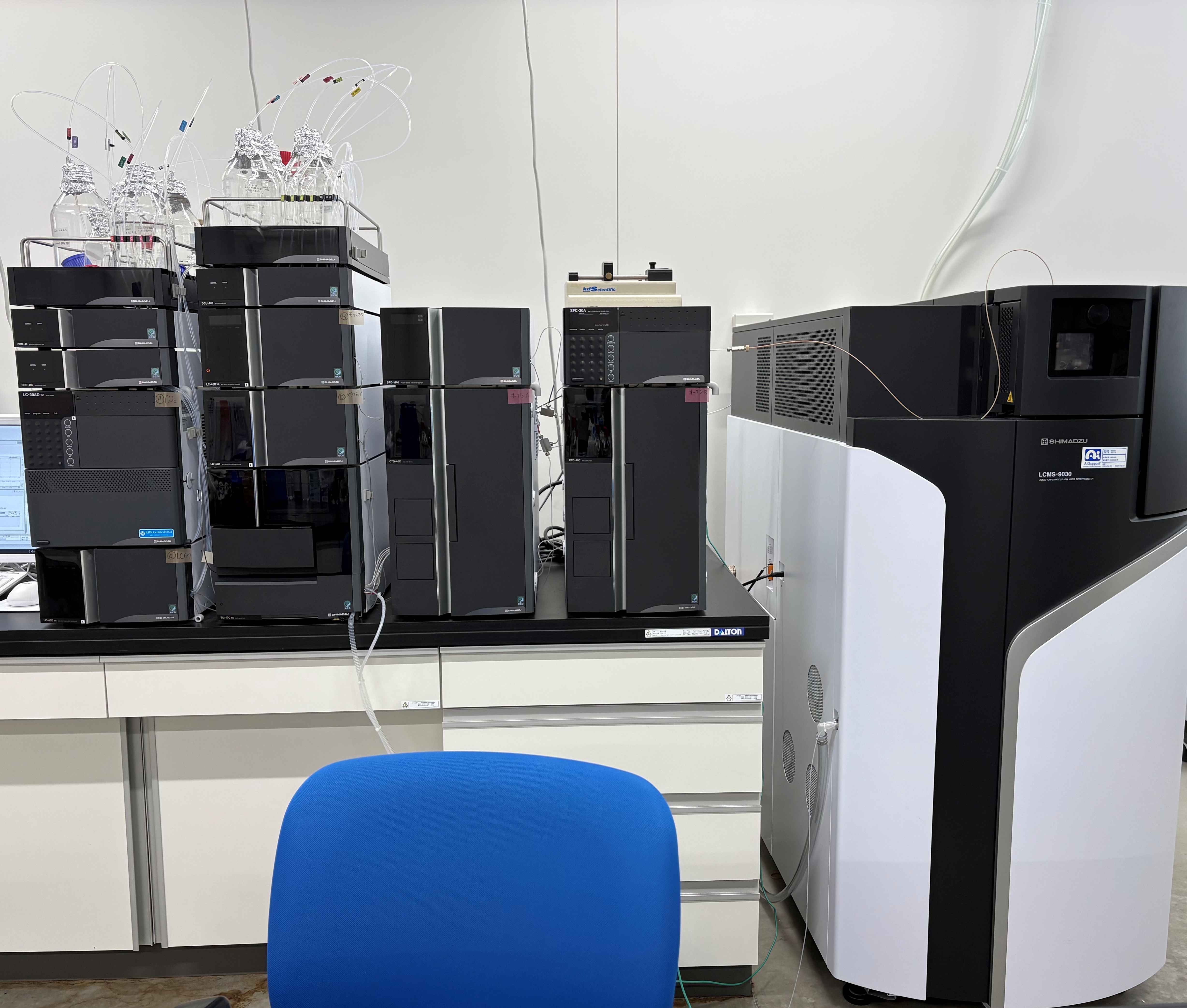共同利用機器センターは、京都薬科大学が有する先端的各種分析機器を有効に共同利用する目的で設けられています。センターでは、質量分析(MS)・核磁気共鳴分光分析(NMR)・元素分析等に関する機器の直接管理や分析業務などを主に行っています。当センターは本学教員・学生・院生はもちろん、学外協定校からの連携研究者の方も利用できます。また当センター独自の研究として、低分子化合物から細胞までを包括して有機的に連携させた研究を行っています。例えば、疾患関連タンパク質を標的とした治療薬につなげる分子設計を基盤とする研究や疾患発症時にタンパク質が毒性を獲得する分子メカニズムを解明することで、タンパク質の構造を分子的に制御する方法の探求も進めています。
