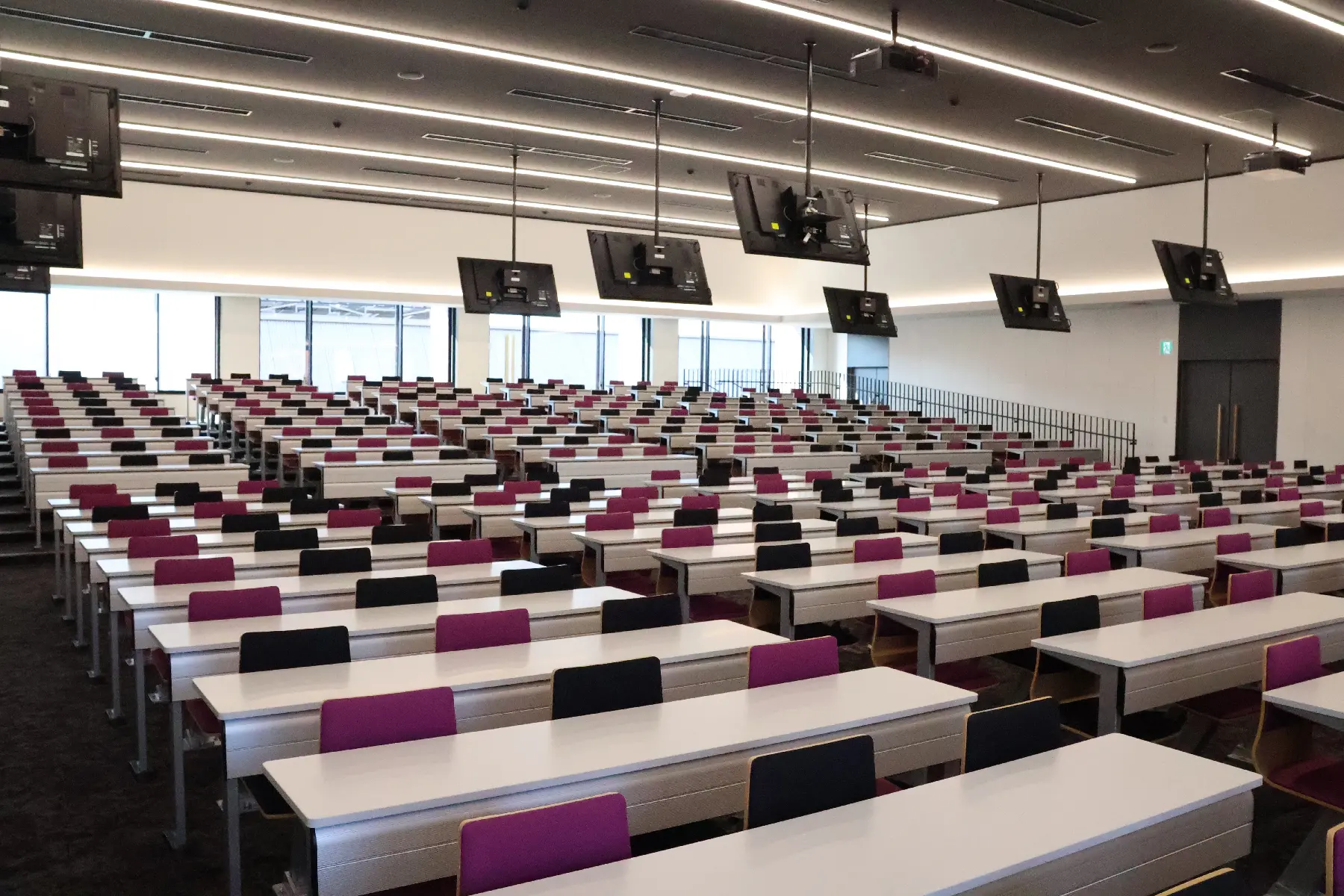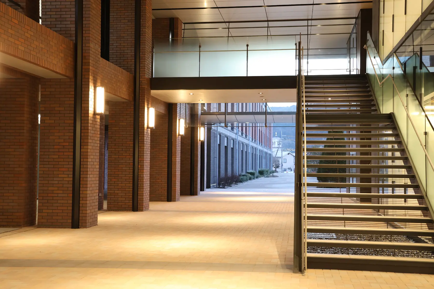 This facility is equipped with training, shower, and changing rooms. As an auditorium, it features a central stage and fully automated movable seating (512 seats). This three-storey building is also designated as an evacuation facility in the event of a regional disaster.