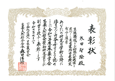 受 賞:生薬学分野 講師 太田 智絵