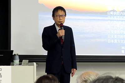 午後からは本校地の講義室に場所を移して3つの講演を実施しました。午後の部の講演に先立ち、赤路学長から薬用植物園100周年に対する想いを込めた挨拶が行われた後、初めに薬用植物園100周年記念として、広島国際大学 中島 正光教授に「朝起きられない・気象病!それ、漢方で治せるフクロウ型体質(夜型体質)かも?~」と題して、夜型体質の症例とその漢方治療についてわかりやすくお話しいただきました。