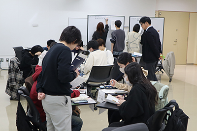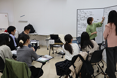 2025年11月4日(火)、多様化する医療において複雑化する患者対応のためのチーム医療を実践できる人材育成の一環として、同じ山科区にある京都橘大学と合同で多職種連携教育(IPE:Interprofessional Education)を開催しました。 このIPEは毎年京都薬科大学薬学部薬学科5年次生、京都橘大学看護学部看護学科、健康科学部理学療法学科および作業療法学科の4年次生を対象に実施している選択制のプログラムで、今年度からは新しい取り組みとして京都橘大学の健康科学部救急救命学科および臨床検査学科も加わり、より学科を拡大して行われました。当日は各学科から5~10人ずつ計33人が参加し、両大学の教員により作成されたシナリオ事例についてグループディスカッションを行いました。 今年度のプログラムでは、119番通報からの救急隊による対応・搬送および病院における救急外来・ICUでの治療までのシナリオ《フェーズ1(救急搬送~ER・ICU)》とICUから一般病棟に転棟してから退院に至るまでのシナリオ《フェーズ2(一般病棟~退院)》について、各学科の学生が専門知識を駆使してディスカッションを行いました。 フェーズ1では、救急救命学科の学生による傷病者への対応およびバイタルサインの測定、病院や医師との連携についてケーススタディを実施。その後、看護学科や臨床検査学科の学生による必要検査項目の検討、また検査結果をもとに薬学科の学生も交えて必要な処置や医薬品の選択・提案についてディスカッションを行いました。 フェーズ2では、フェーズ1で救急搬送された患者が一般病棟へ転棟し退院するという設定で、看護学科、理学療法学科、作業療法学科、薬学科の学生でディスカッションを行いました。シナリオでは患者の主訴や入院中の検査結果および治療方針、退院に向けてのカンファレンス、退院時処方などの情報の他に、患者の家族構成や自宅の間取りも含めた住宅環境など具体的な情報が設定されており、患者の自立に向けた支援や環境改善、服薬管理などそれぞれの目線からディスカッションを行いました。さらに、身体面や精神面だけでなく、経済面についてもディスカッションしていました。 最後のまとめとして、フェーズ1およびフェーズ2の各グループで議論した内容をまとめて合同発表を行い、お互いのフェーズでの議論内容について情報を共有したことで、他職種の視点や考え方、フェーズの違いによる役割の変化、チーム医療としての医療支援について理解を深めることができたようです。 最後の講評では、両大学の各学科の教員より「実際の現場でも各職種の専門性を発揮して、患者の治療や支援に協力してほしい」、「他職種の強みを理解したうえで、積極的に連携してチーム医療を実現してほしい」、「フェーズが変わると各職種の役割も変化するので、各フェーズにあった役割を想定してチーム医療に貢献してほしい」などのフィードバックがあり、学生たちは真剣に耳を傾けていました。 本学は、今後も京都橘大学と連携を深めながら、プログラムの充実と継続を図り、より専門性と実践能力の高い医療人の育成を目指していきます。