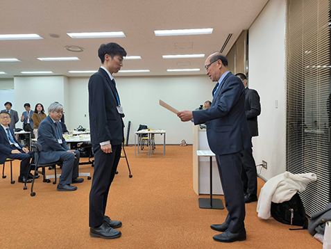 表彰式において、幹事校:京都府立医科大学の夜久均学長より賞状を授与されました。