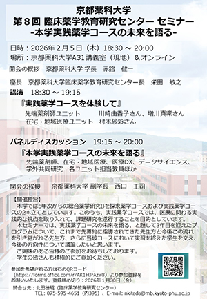 本学の臨床薬学教育研究センターでは、臨床教育・研究のさらなる発展を目指して以下のとおりセミナーを開催します。